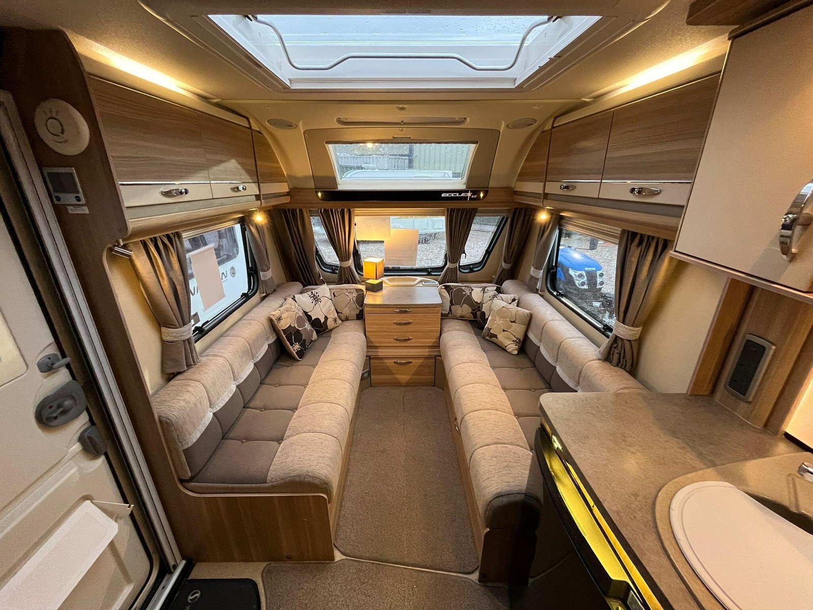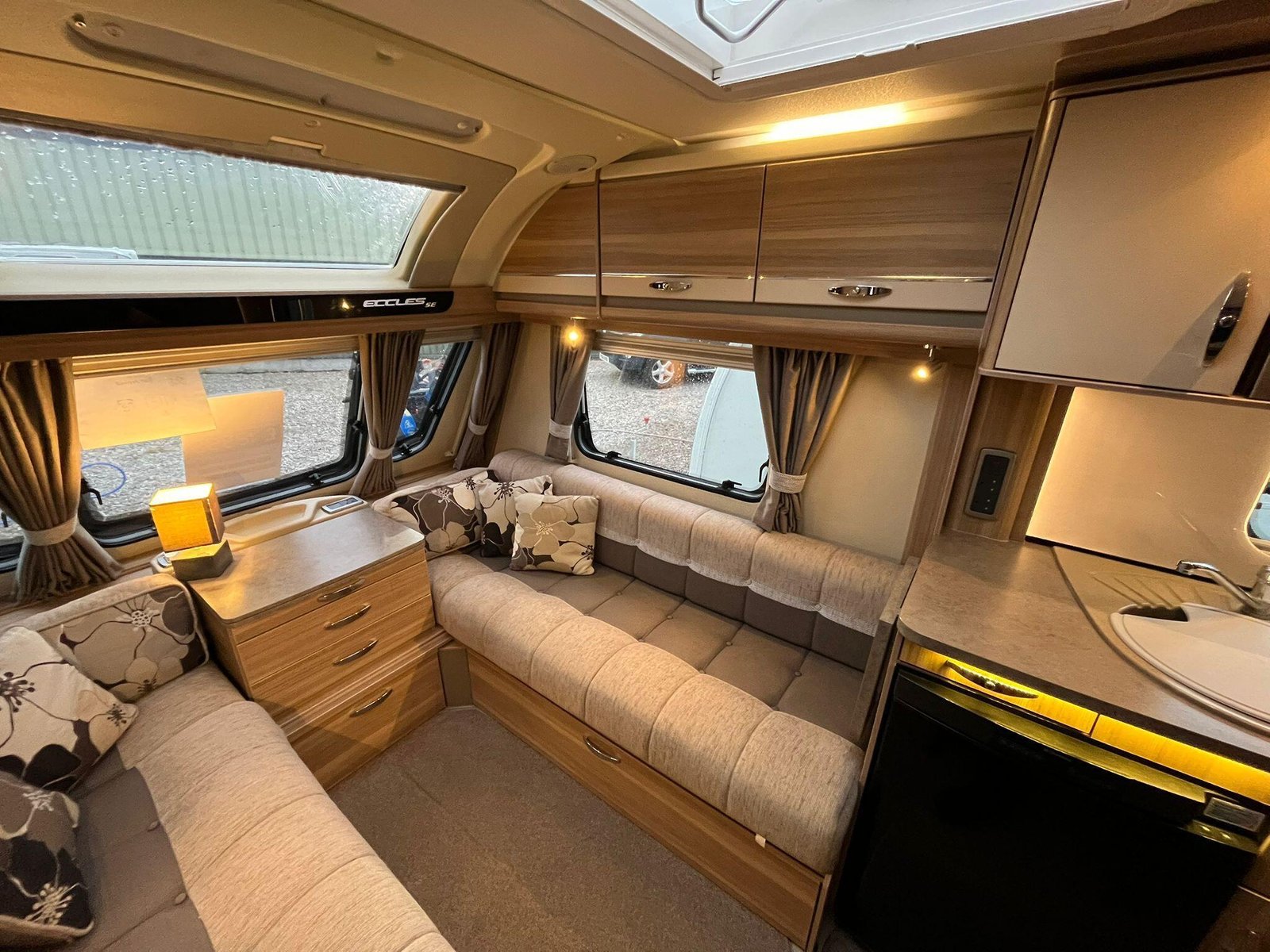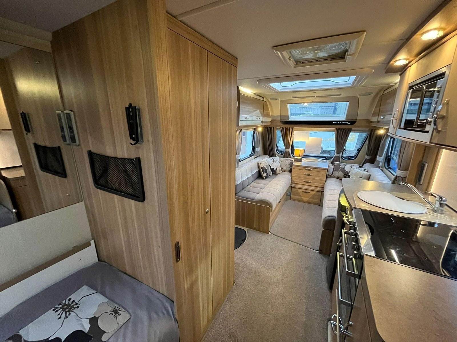 The 2013 Sterling Eccles SE Voyager is a four-berth touring caravan designed to offer a comfortable and well-equipped holiday experience, suitable for couples or families alike. It belongs to the Sterling Eccles SE range, a line introduced with enhanced specification for 2013 that aimed to combine the quality and equipment levels of higher-end models with a lighter overall build. As a twin-axle model it provides good towing stability and a feeling of solidity on the road.Inside, the Voyager’s layout provides fixed beds at the rear with an adjoining washroom that includes a separate shower, giving a sense of an ensuite arrangement. At the front is a flexible lounge/dining area that can convert into additional sleeping space at night. The interior finish reflects the SE range’s emphasis on comfort, with quality kitchen fittings including a hob and sink, and plenty of storage for personal gear. Entertainment and convenience are supported by multiple TV sockets and practical utilities designed for extended stays.The caravan’s equipment list is generous for its class, with features such as Alde wet central heating as standard, offering efficient warmth throughout, and an internal water tank, which is less common in many tourers of this type. The layout gives a well-balanced combination of sleeping zones, living space and practical facilities, making it appealing for touring across the UK or into Europe.