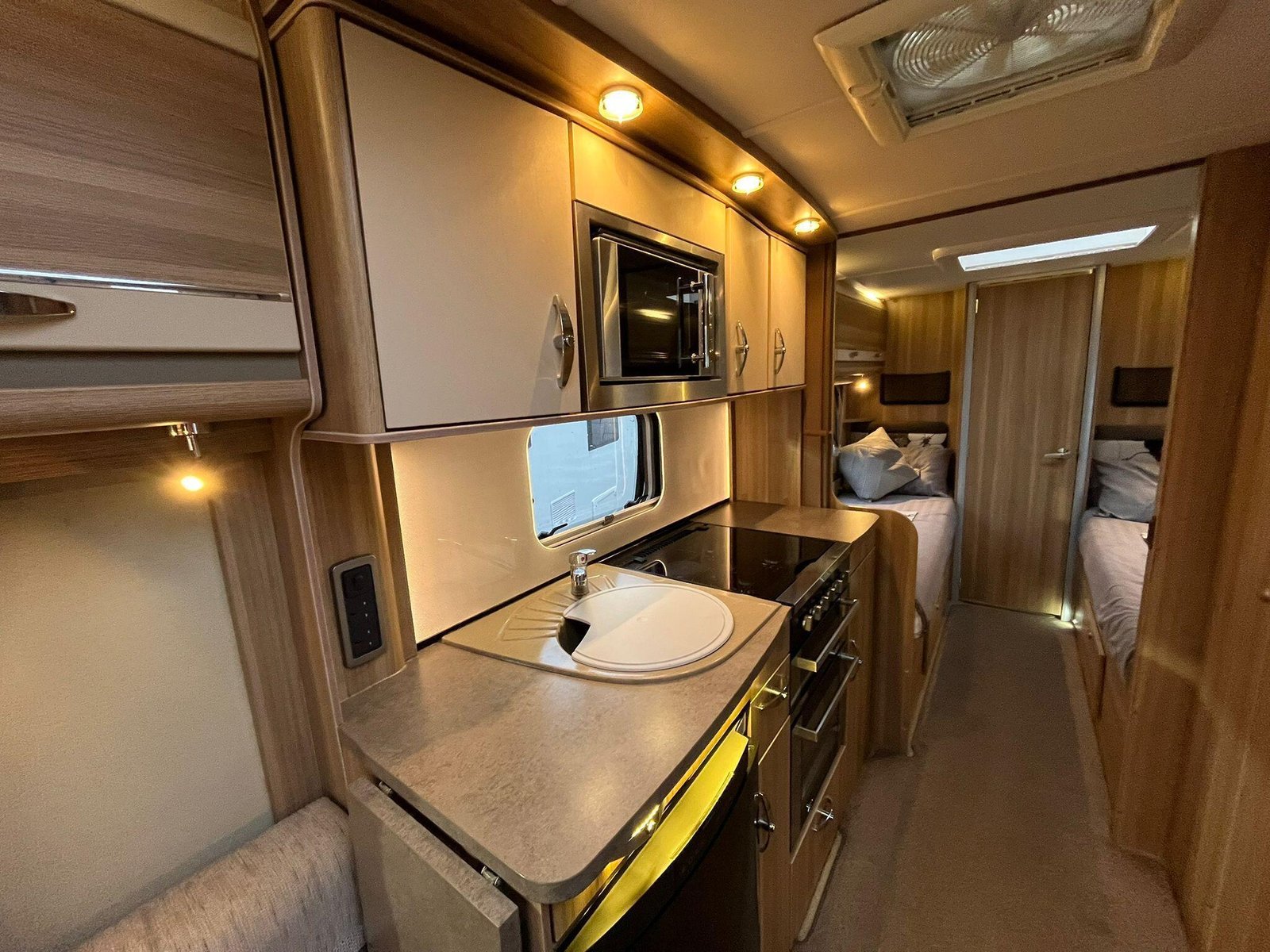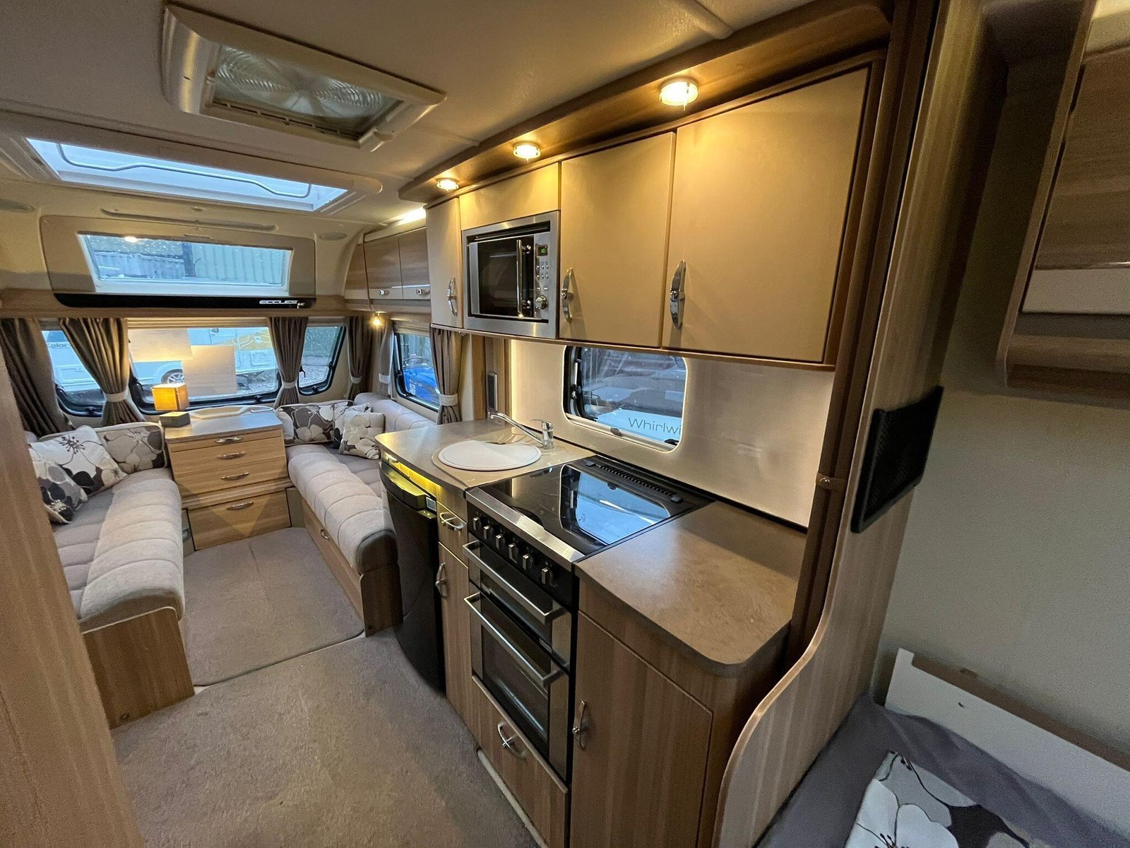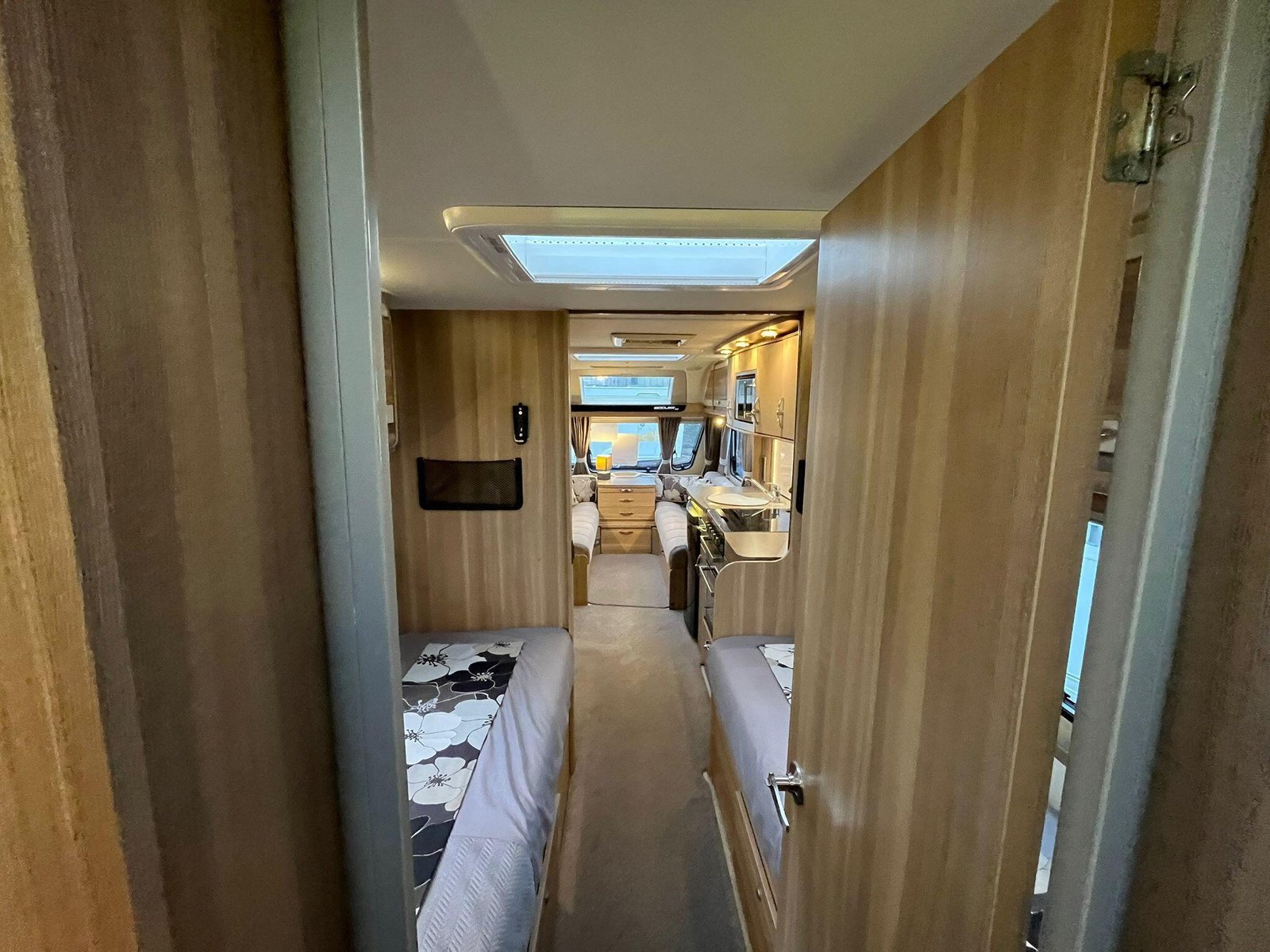 The 2013 Sterling Eccles SE Voyager is a four-berth touring caravan designed to offer a comfortable and well-equipped holiday experience, suitable for couples or families alike. It belongs to the Sterling Eccles SE range, a line introduced with enhanced specification for 2013 that aimed to combine the quality and equipment levels of higher-end models with a lighter overall build. As a twin-axle model it provides good towing stability and a feeling of solidity on the road.Inside, the Voyager’s layout provides fixed beds at the rear with an adjoining washroom that includes a separate shower, giving a sense of an ensuite arrangement. At the front is a flexible lounge/dining area that can convert into additional sleeping space at night. The interior finish reflects the SE range’s emphasis on comfort, with quality kitchen fittings including a hob and sink, and plenty of storage for personal gear. Entertainment and convenience are supported by multiple TV sockets and practical utilities designed for extended stays.The caravan’s equipment list is generous for its class, with features such as Alde wet central heating as standard, offering efficient warmth throughout, and an internal water tank, which is less common in many tourers of this type. The layout gives a well-balanced combination of sleeping zones, living space and practical facilities, making it appealing for touring across the UK or into Europe.