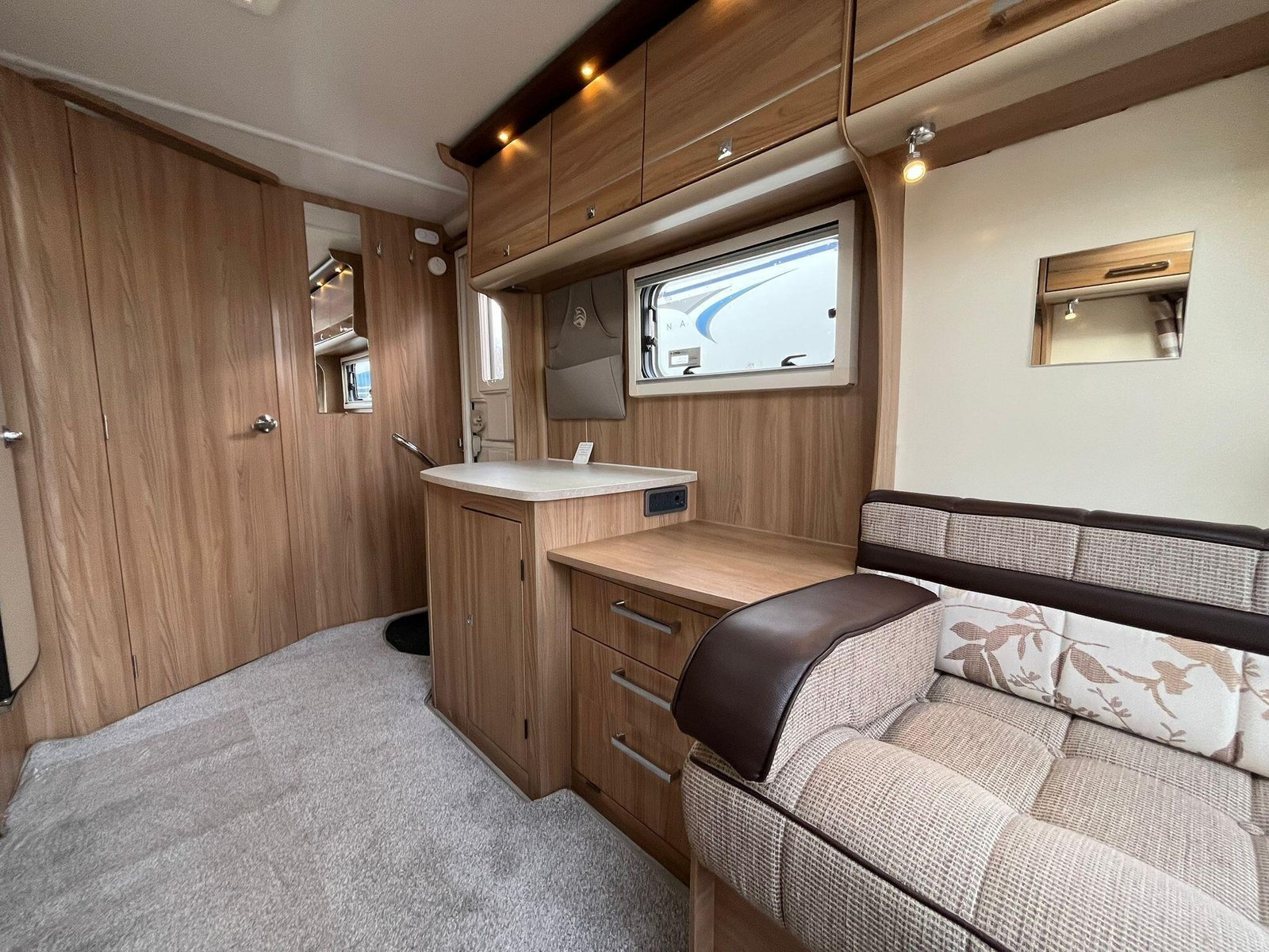 The 2015 Bailey Unicorn Seville is a well-equipped, two-berth touring caravan designed primarily for couples. It has a single-axle layout with a bright, open front lounge that converts into either a pair of single beds or one large double bed. The large front window and rooflight give the living area an airy, spacious feel.The kitchen is fully fitted and includes an oven, grill, hob, microwave and a three-way fridge, with good worktop space and plenty of storage. At the rear is a full-width washroom featuring a separate shower cubicle, toilet, washbasin, wardrobe and useful storage areas. This rear bathroom layout is one of the Seville’s key strengths, offering more comfort and privacy than many caravans of similar size.Heating and hot water are provided by the Alde wet central-heating system, making the Seville comfortable for all-season touring. Electrical hookups, solar panel, 12-volt lighting, and well-placed interior sockets add convenience, along with the external 230V socket and BBQ point and motor mover. The exterior features Bailey’s Alu-Tech style construction with a clean, modern finish with alloy wheels. AL-KO ATC and a stabiliser hitch improve the towing stability.Overall, the 2015 Unicorn Seville is a popular choice for couples seeking a compact caravan with high comfort levels, a luxury feel and a practical, user-friendly layout.