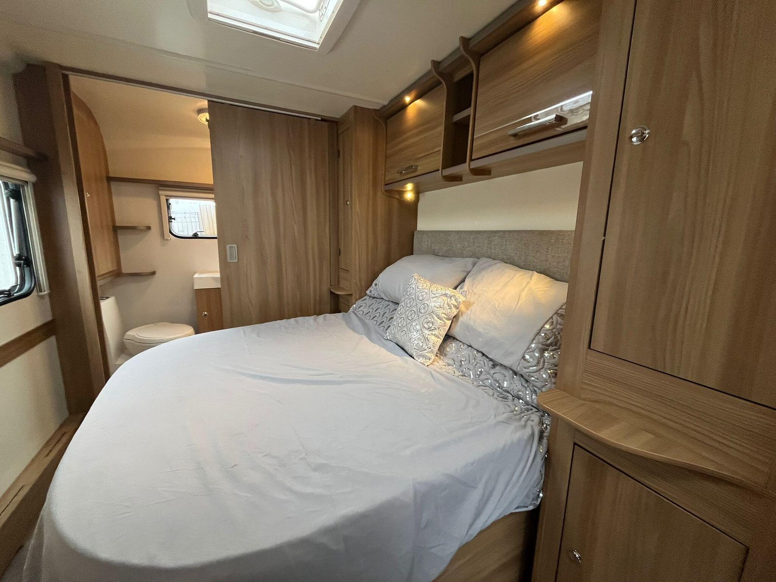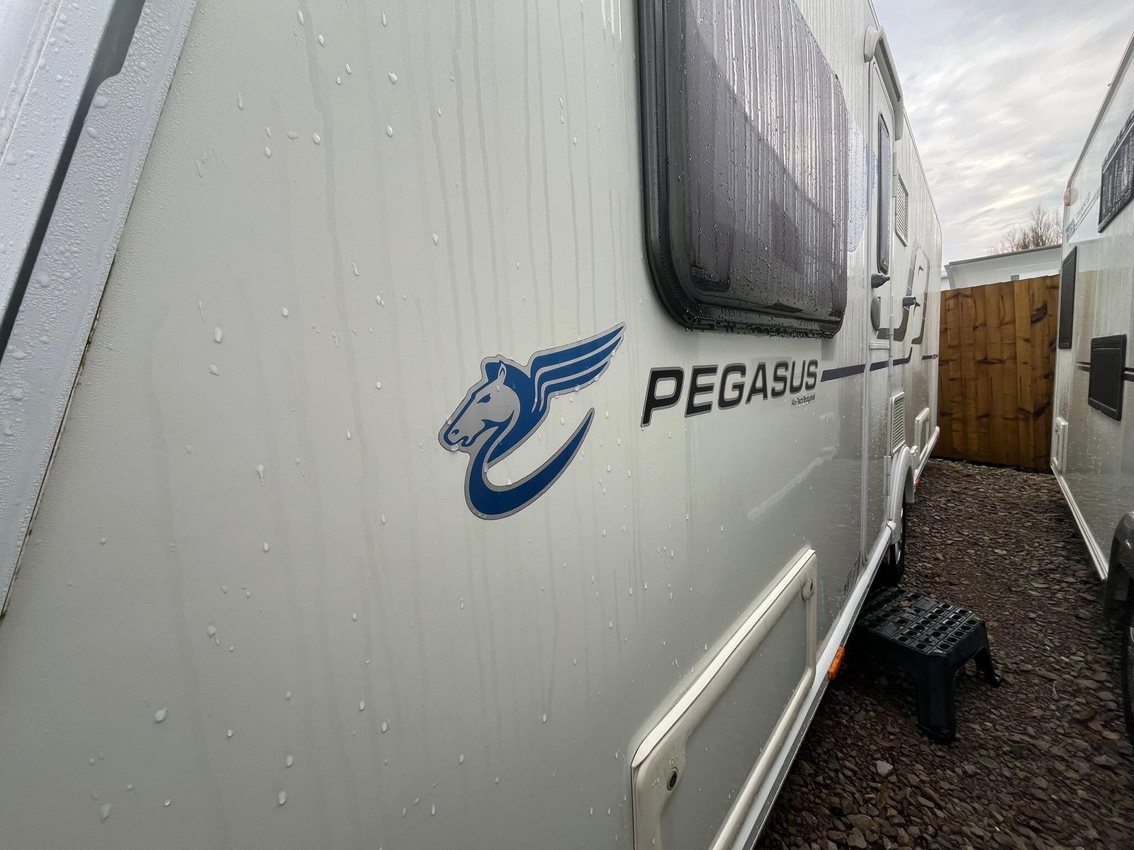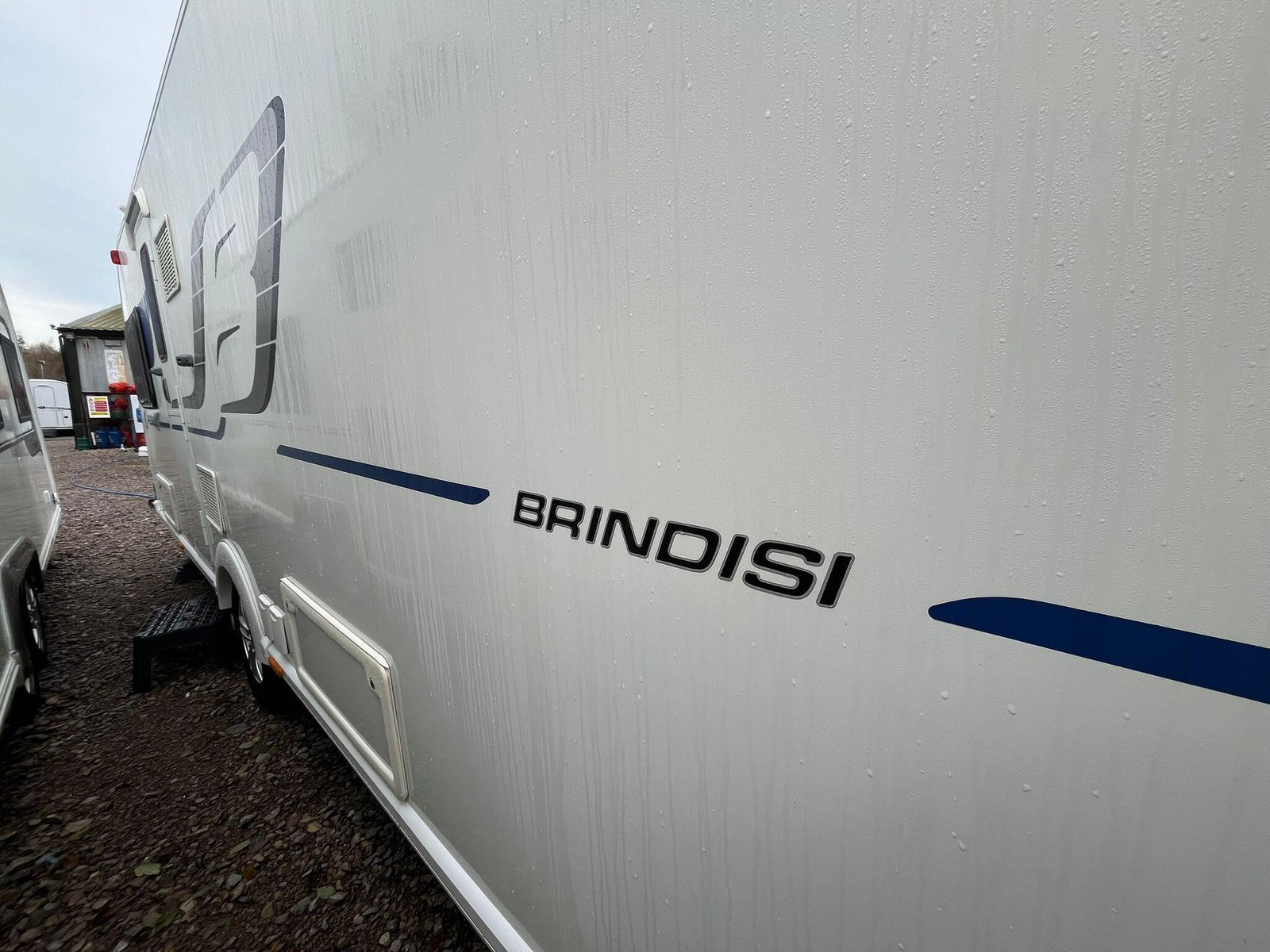 The 2016 Bailey Pegasus Brindisi is a stylish, well-equipped single-axle caravan designed mainly for couples but able to accommodate up to four people when required. It features a popular layout with a fixed transverse island bed at the rear, creating a comfortable and private sleeping space that feels more like a dedicated bedroom than a typical caravan layout. Beyond the bed sits a full-width end washroom with a separate shower cubicle, a washbasin with storage beneath and a Thetford cassette toilet, providing excellent practicality and making daily routines feel effortless while away.At the front of the caravan is a bright and welcoming lounge with two parallel settees that convert into an additional double bed or two short singles. Large windows and well-placed roof lights allow plenty of natural light to fill the space, while modern LED lighting helps maintain a warm and pleasant atmosphere during the evening.The central kitchen is well specified, equipped with a three-burner gas hob plus an electric hotplate, a separate oven and grill, an eye-level microwave and a tall slimline fridge/freezer. A handy worktop extension creates extra space for food preparation, making the kitchen both practical and efficient for longer stays.Storage is one of the Brindisi’s real strengths, with plentiful overhead lockers, wardrobes beside the bed, under-sofa compartments, under-bed storage and additional cupboards throughout the interior. This generous storage provision helps keep the living space organised and clutter-free on extended holidays.Externally, the caravan benefits from Bailey’s durable Alu-Tech construction and is built on an AL-KO chassis with a stabiliser for confident towing. This example also includes an external 230V socket for outdoor appliances and a fitted motor mover to make positioning the caravan simple and stress-free. For added reassurance, it is supplied with a 12-month warranty. Overall, the 2016 Pegasus Brindisi offers a practical touring experience, making it a very good choice for couples wanting an easy-to-use caravan.