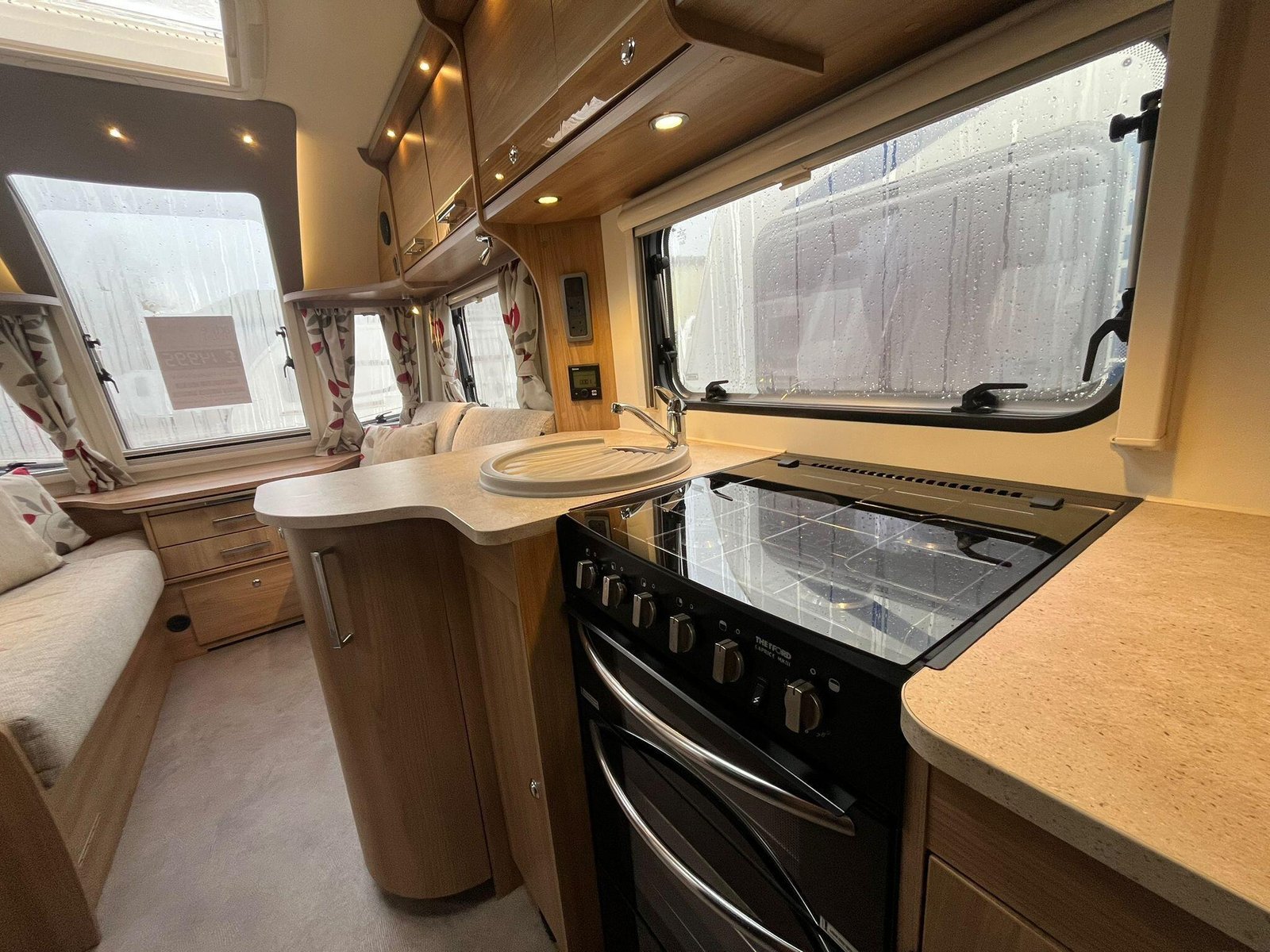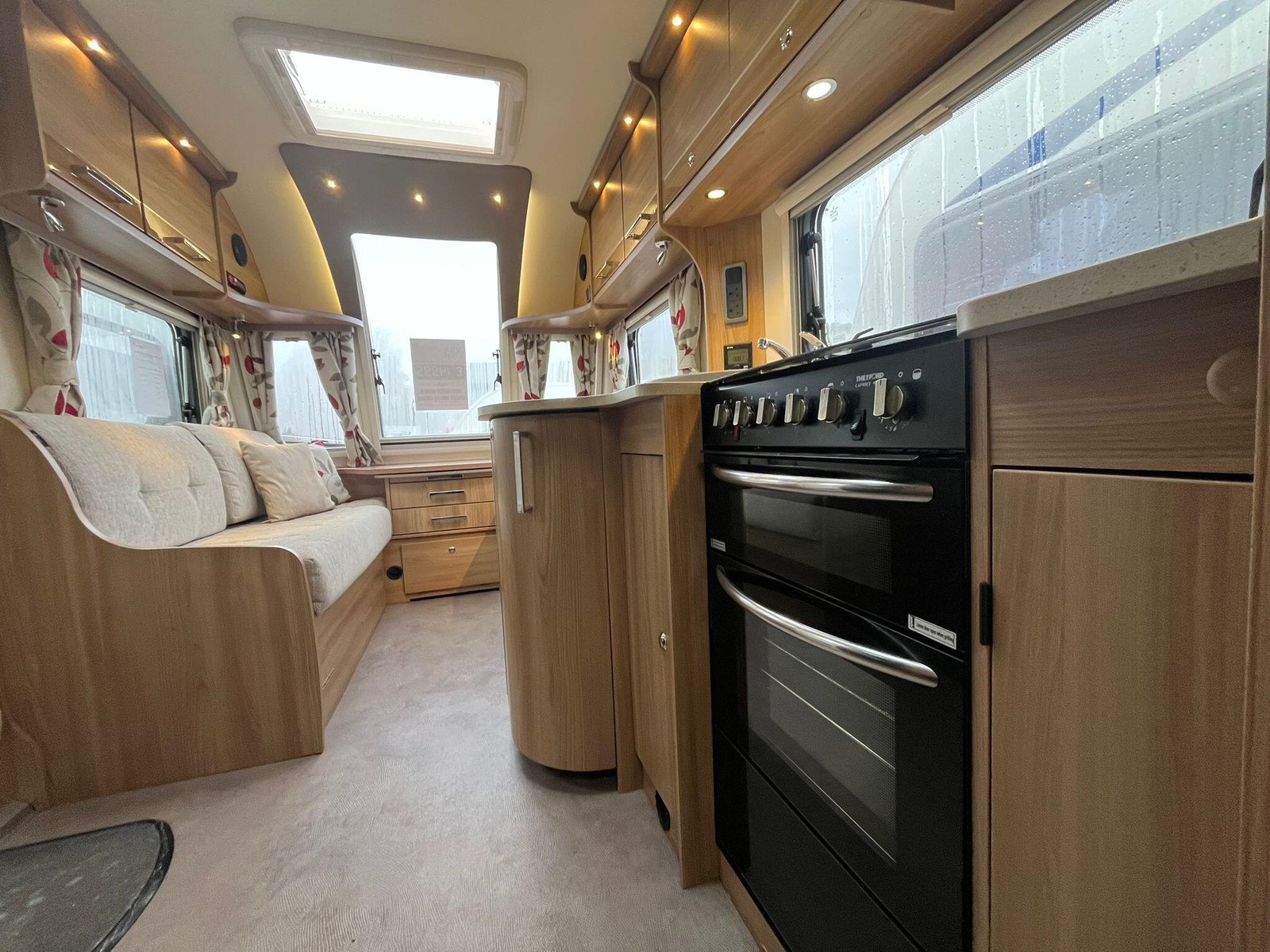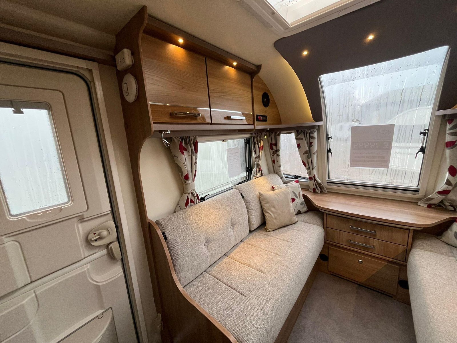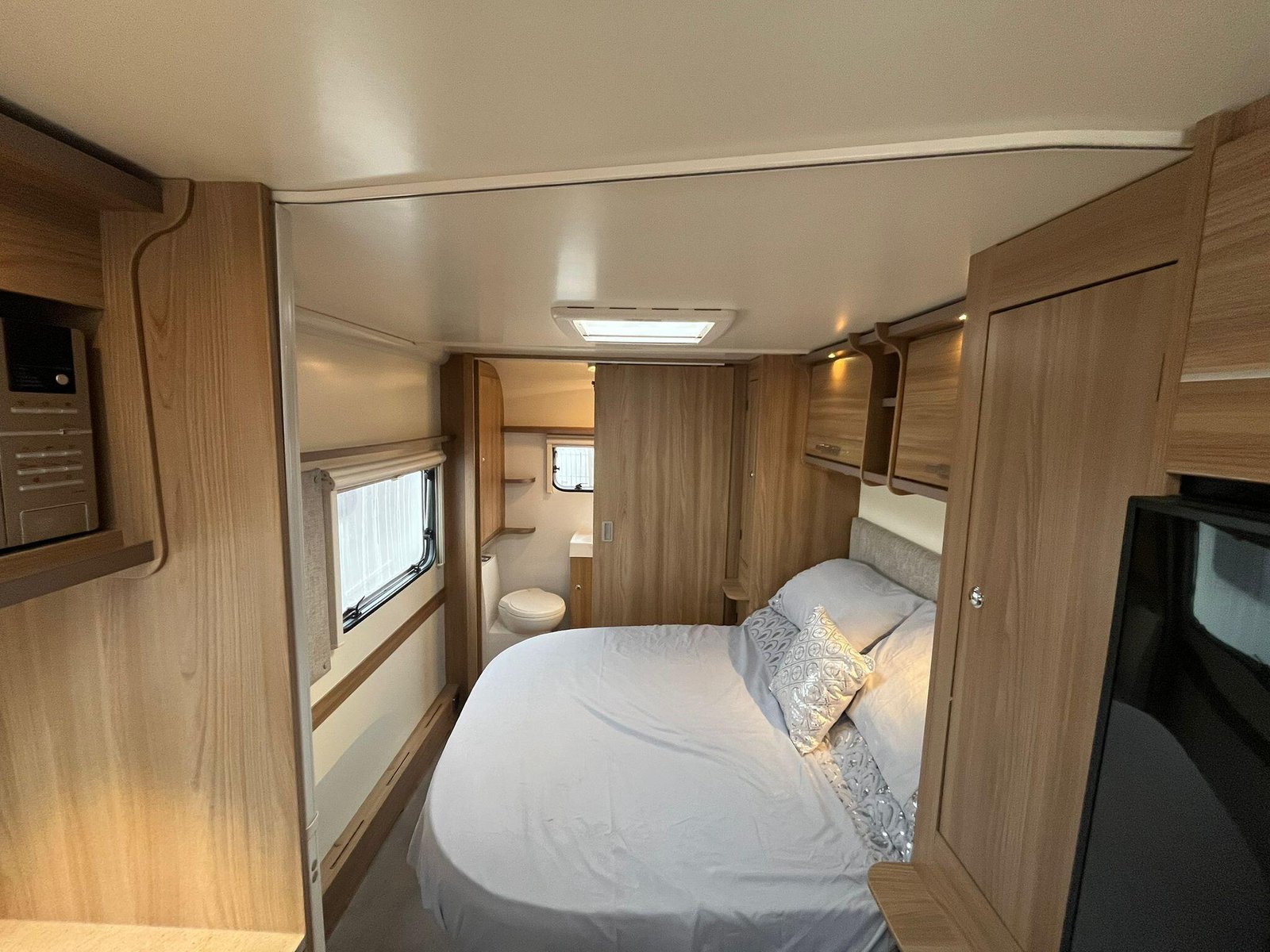 The 2016 Bailey Pegasus Brindisi is a stylish, well-equipped single-axle caravan designed mainly for couples but able to accommodate up to four people when required. It features a popular layout with a fixed transverse island bed at the rear, creating a comfortable and private sleeping space that feels more like a dedicated bedroom than a typical caravan layout. Beyond the bed sits a full-width end washroom with a separate shower cubicle, a washbasin with storage beneath and a Thetford cassette toilet, providing excellent practicality and making daily routines feel effortless while away.At the front of the caravan is a bright and welcoming lounge with two parallel settees that convert into an additional double bed or two short singles. Large windows and well-placed roof lights allow plenty of natural light to fill the space, while modern LED lighting helps maintain a warm and pleasant atmosphere during the evening.The central kitchen is well specified, equipped with a three-burner gas hob plus an electric hotplate, a separate oven and grill, an eye-level microwave and a tall slimline fridge/freezer. A handy worktop extension creates extra space for food preparation, making the kitchen both practical and efficient for longer stays.Storage is one of the Brindisi’s real strengths, with plentiful overhead lockers, wardrobes beside the bed, under-sofa compartments, under-bed storage and additional cupboards throughout the interior. This generous storage provision helps keep the living space organised and clutter-free on extended holidays.Externally, the caravan benefits from Bailey’s durable Alu-Tech construction and is built on an AL-KO chassis with a stabiliser for confident towing. This example also includes an external 230V socket for outdoor appliances and a fitted motor mover to make positioning the caravan simple and stress-free. For added reassurance, it is supplied with a 12-month warranty. Overall, the 2016 Pegasus Brindisi offers a practical touring experience, making it a very good choice for couples wanting an easy-to-use caravan.