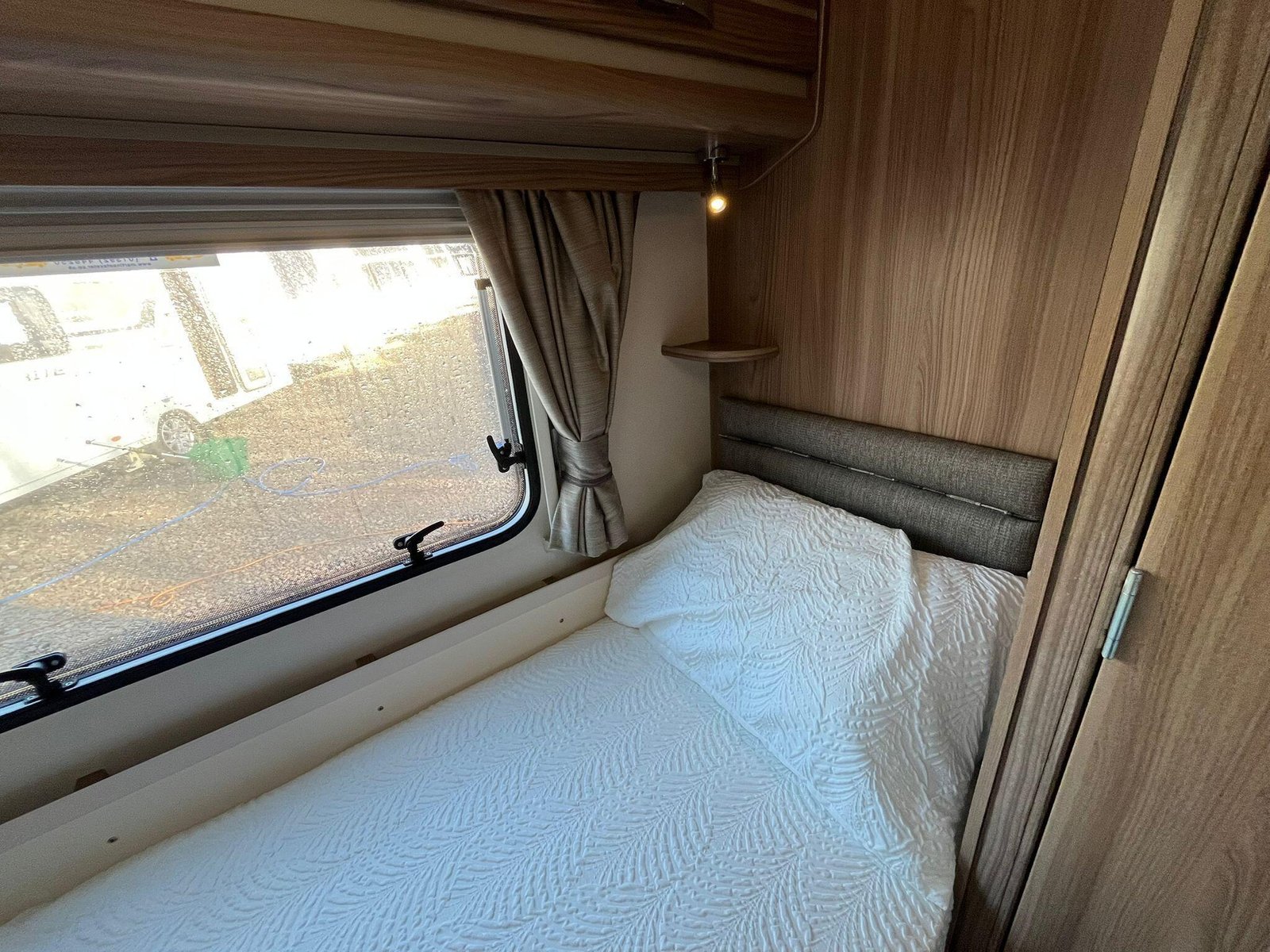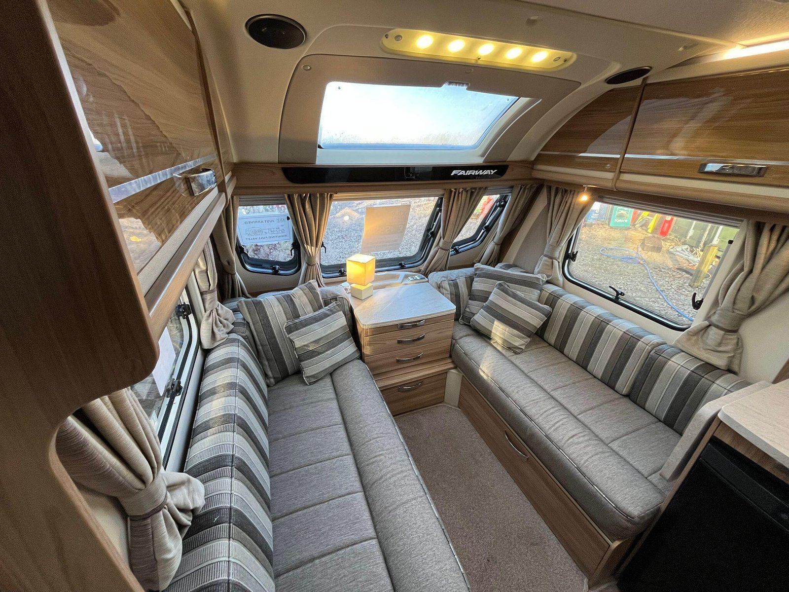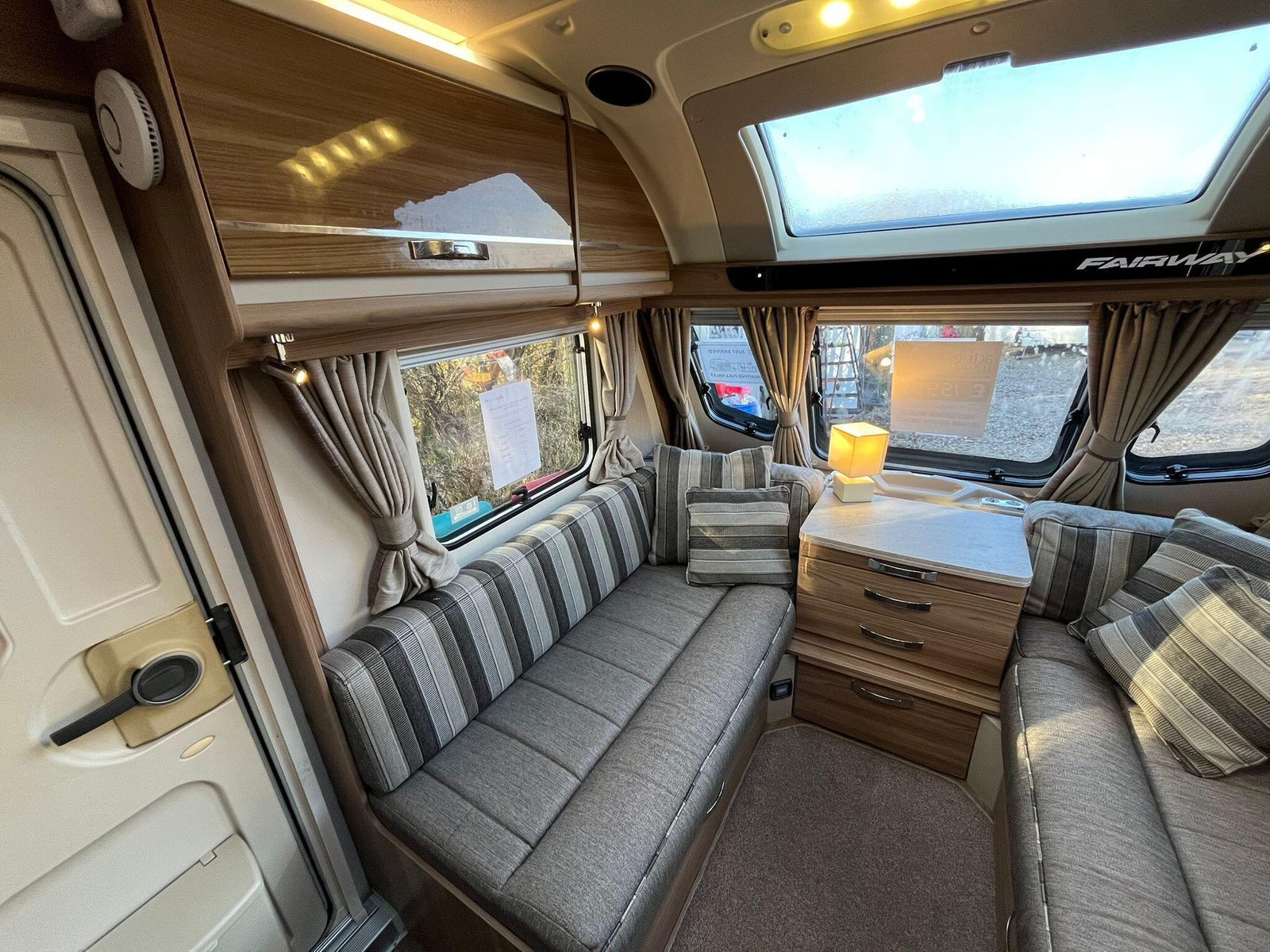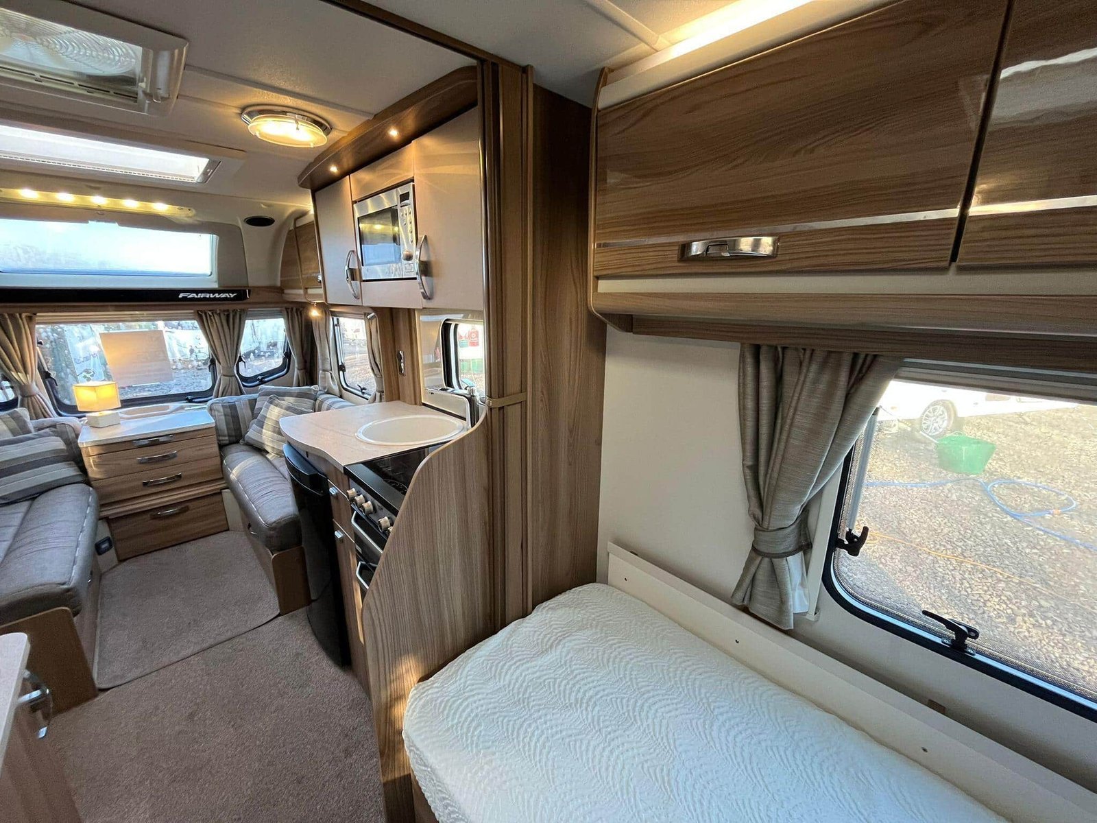 The 2016 Swift Fairway 565 is a four-berth touring caravan from Swift’s Fairway range that offers practical family-friendly accommodation and the familiar quality associated with the British manufacturer. Built on a single axle with a conventional layout, the 565 includes a spacious front lounge area whose bench seating converts into a large double bed, letting you relax or sleep in comfort and versatility. Towards the rear there are fixed twin single beds that provide easy access and separate sleeping spaces, ideal for families or couples who prefer their own sleeping arrangements. At the back of the caravan a full washroom area with facilities provides an integrated space to freshen up without having to leave the caravan.The interior is designed to make the most of available space with overhead lockers and under-seat storage, and a central kitchen area equipped with essentials for meal preparation such as a hob, oven and fridge. This particular Fairway 565 is enhanced with Al-Ko ATC (Automatic Trailer Control), which adds an extra layer of stability and confidence on the road by detecting and correcting trailer snaking, and ALDE wet central heating, delivering efficient and even warmth throughout the living and sleeping areas for comfortable year-round use. This model also includes extras like a solar panel and motor mover, helping with off-grid stays and easier manoeuvring on hardstanding pitches. Panoramic windows and rooflights bring natural light into the living area and help create an open, airy feel, while the combination of thoughtful features makes the Fairway 565 well suited to extended holidays and touring adventures.