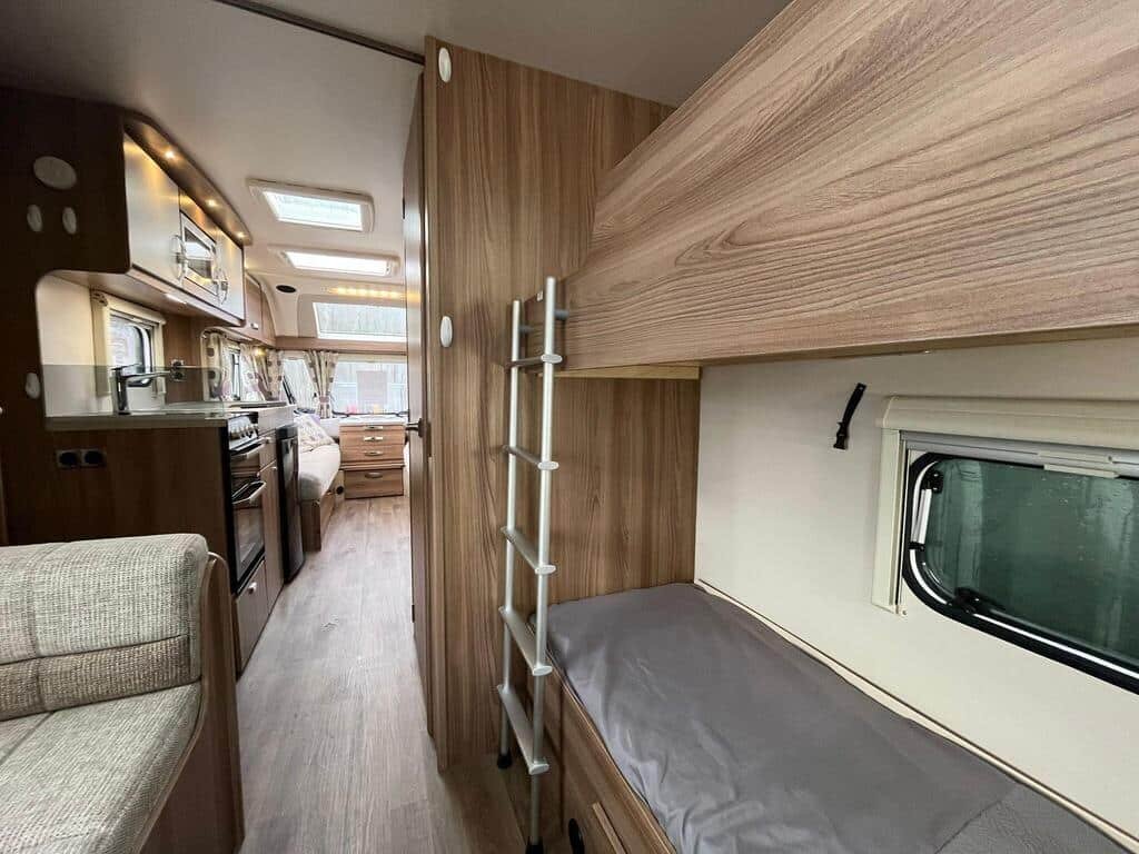 Featuring a spacious lounge area that converts into a double bed, plus a rear seating/dining area that becomes fixed bunk beds, the Prestbury is ideal for families or groups. It also offers a well-equipped kitchen area and a washroom, delivering everything you need for comfortable touring.