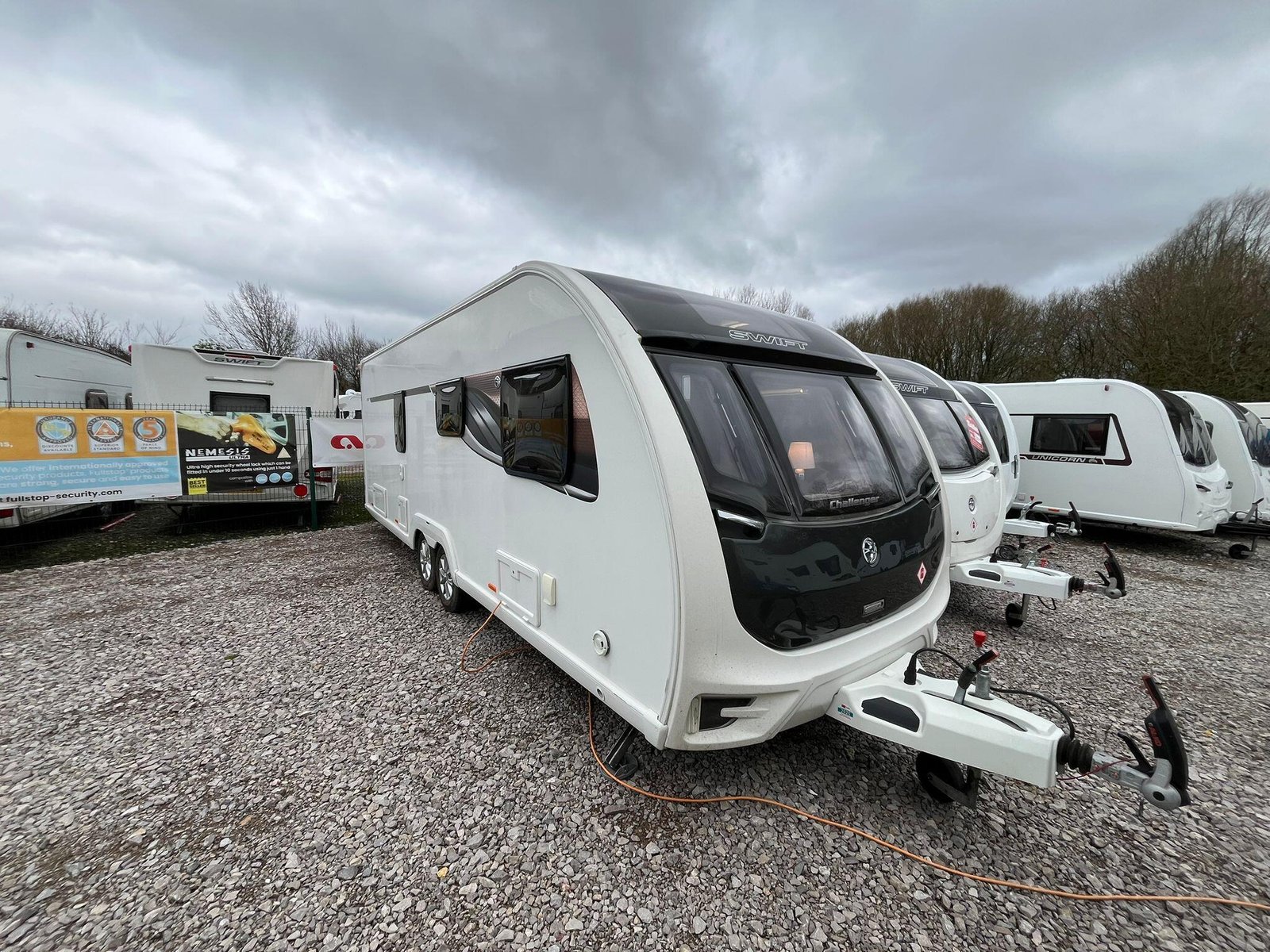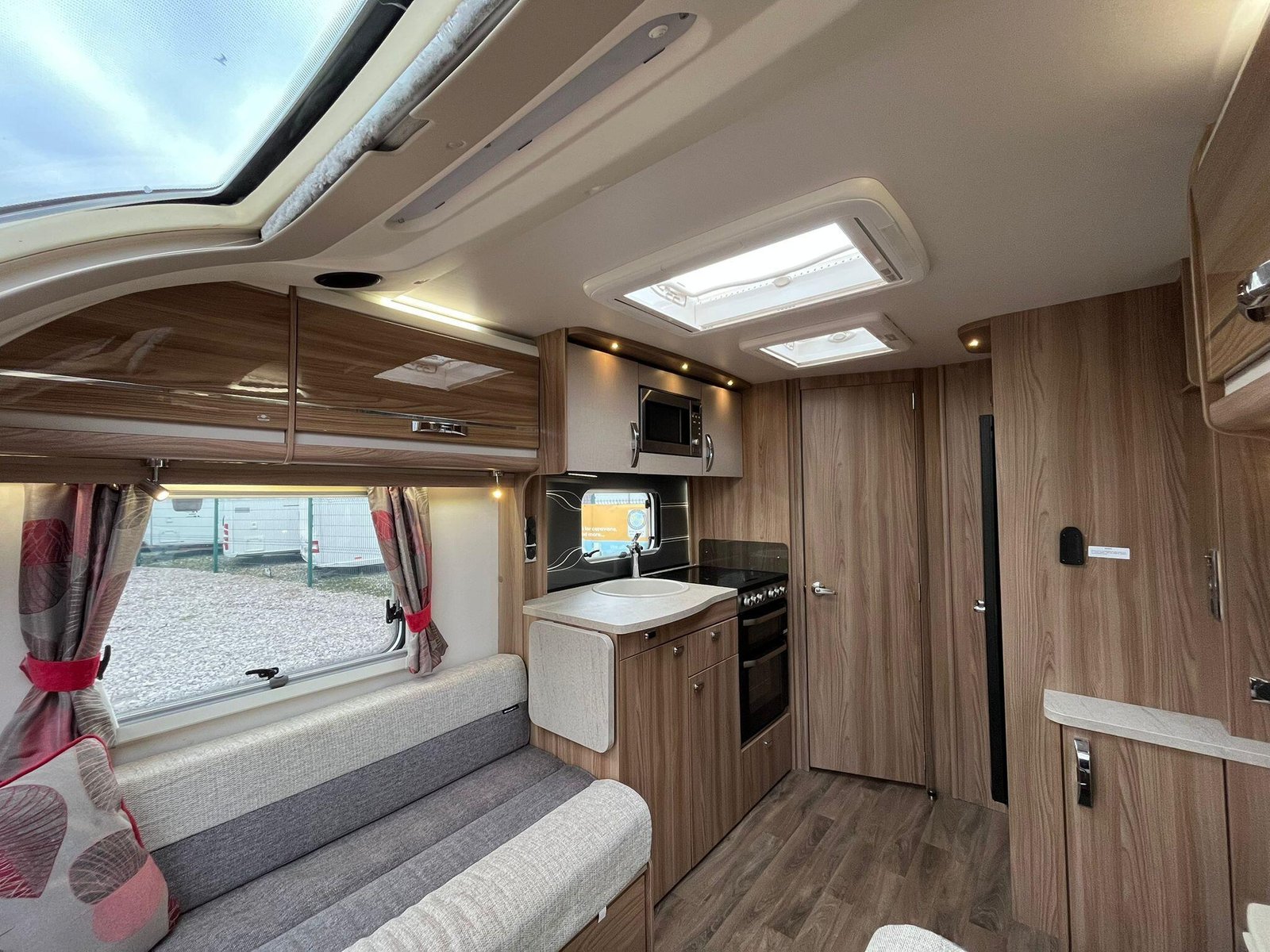 The 2018 Swift Challenger 635, a well-appointed twin-axle caravan that is ideal for couples or families wanting comfort and quality. This popular layout offers a spacious front lounge that converts into a large double bed, while the fixed transverse bed at the rear provides a private and comfortable sleeping area with storage underneath. The modern kitchen is fully equipped with a full oven, grill, hob, microwave and a large fridge freezer, making it easy to enjoy longer stays away. The central washroom includes a separate shower cubicle, toilet and wash basin, creating a practical en-suite style arrangement with good privacy.