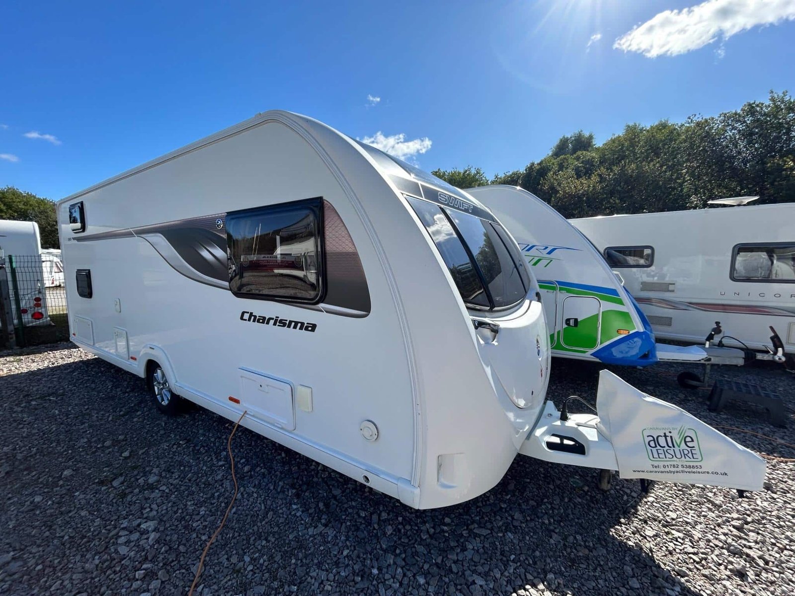 The 2018 Swift Charisma 565 is a spacious 6-berth family caravan with a layout designed for comfort and practicality. At the rear, it has fixed bunk beds alongside a dinette that converts into an additional bunk bed, creating a perfect space for children. At the front, the parallel lounge seating converts into a large double bed, making it ideal for parents or guests.The central kitchen is fully equipped with a hob, oven, grill, microwave, sink, and fridge-freezer, with plenty of storage and preparation space for family meals. The washroom includes a toilet, washbasin, and shower facilities, ensuring convenience on every trip.The interior feels bright and welcoming thanks to the large windows, rooflights, and modern finishes, while clever storage solutions are provided throughout, including overhead lockers, wardrobes, under-seat compartments, and external access lockers.This caravan is fitted with the reliable Truma heating and hot water system and comes with a great range of extras, including a BBQ point, external 230V socket, solar panel, motor mover, and AL-KO ATC trailer control for enhanced safety on the road.It has had just one owner from new and will be supplied with a 12-month warranty for added peace of mind.With its flexible sleeping arrangements, family-friendly design, and excellent specification, the 2018 Swift Charisma 565 is an ideal choice for memorable family adventures.