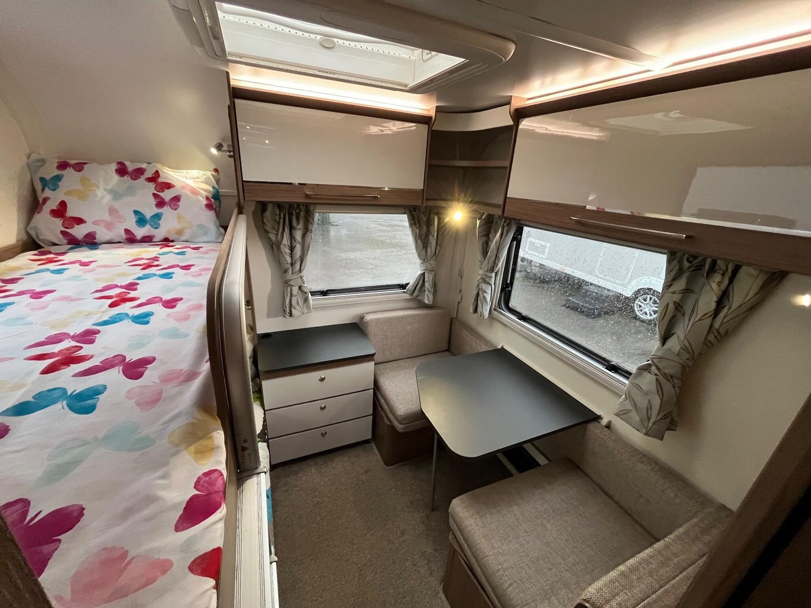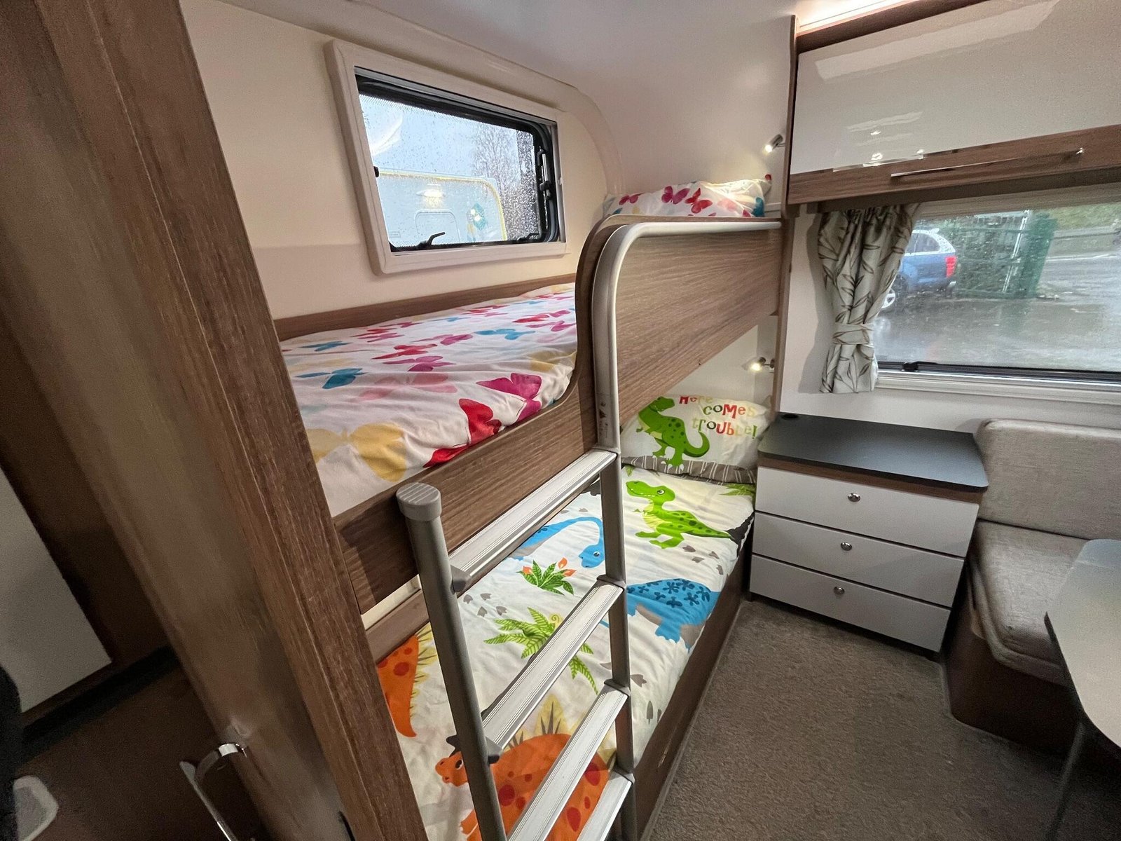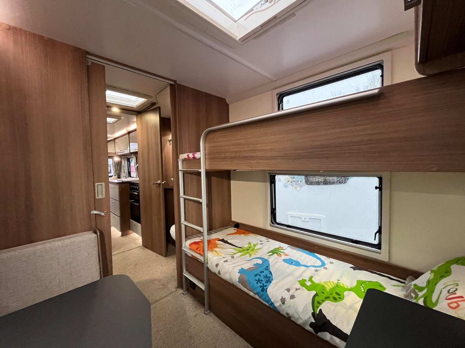 This 2019 Bailey Unicorn Segovia is a top-of-the-range twin-axle family caravan presented in excellent condition. It has had just one owner from new and benefits from a full and comprehensive service history, reflecting careful ownership and regular professional maintenance. The Segovia is highly regarded for its spacious and versatile six-berth layout, making it an ideal choice for families or those who enjoy touring with guests.The bright front lounge converts easily into a generous double bed, while the central kitchen is fully equipped with an oven, grill, hob, microwave and large fridge/freezer. To the rear, the caravan offers an excellent family-friendly arrangement with fixed bunk beds alongside a rear dinette that also converts into additional bunk beds, providing flexible sleeping options for children or guests. A centrally positioned washroom with separate shower and toilet adds convenience and privacy.Built using Bailey’s proven ALU-TECH construction, the Unicorn Segovia offers durability, strength and improved insulation for comfortable year-round touring. Heating and hot water are provided by the Alde wet central heating system. Additional features include a fitted solar panel, BBQ point, external 230V mains socket, USB charging sockets, and a quad motor mover for effortless manoeuvring. Safety and stability are enhanced with AL-KO ATC trailer control and an AL-KO Secure wheel lock.Supplied with a 12-month warranty, this one-owner 2019 Bailey Unicorn Segovia represents an excellent opportunity to purchase a premium, well-equipped family caravan that has been carefully maintained and is ready for immediate use.