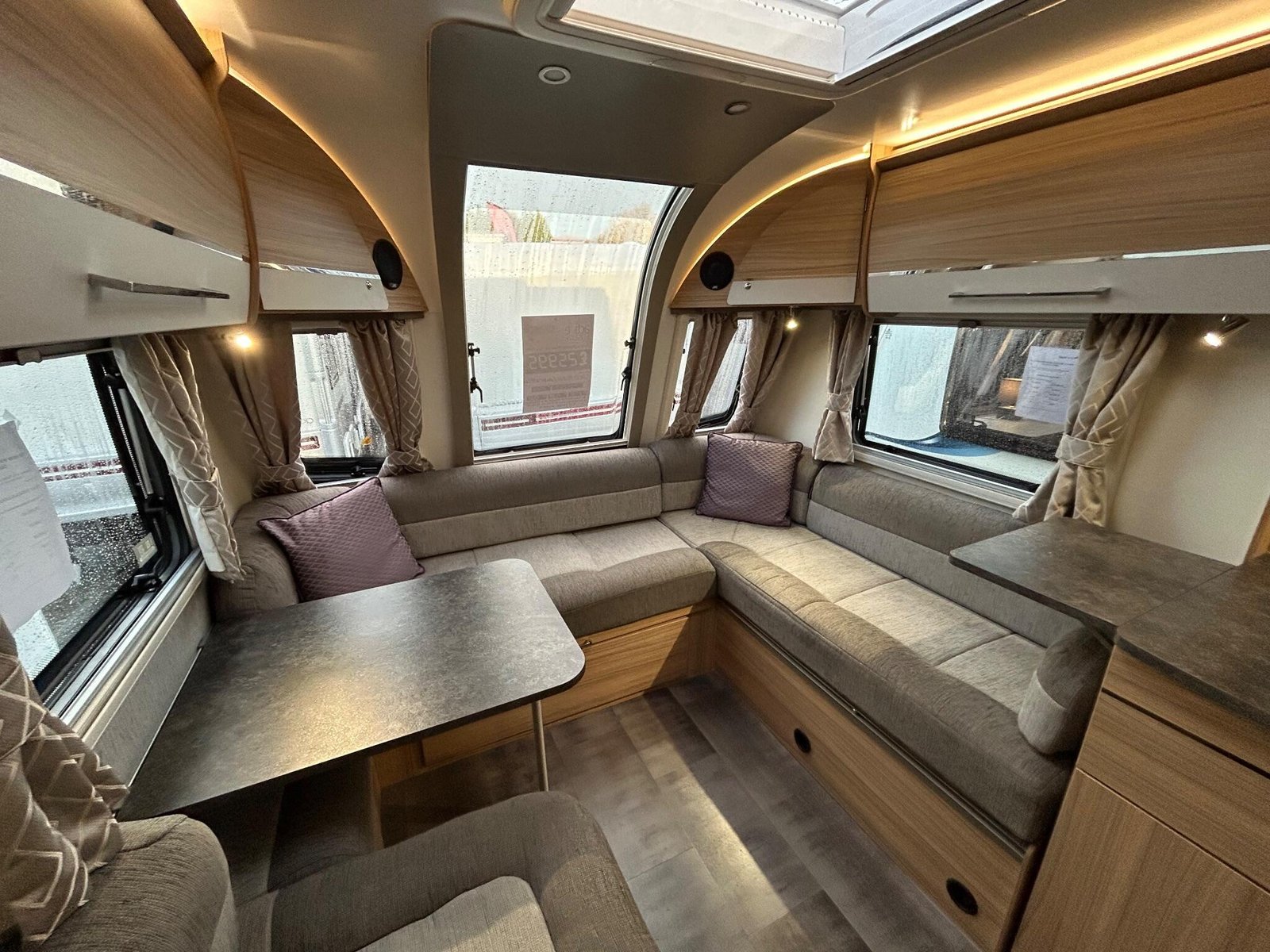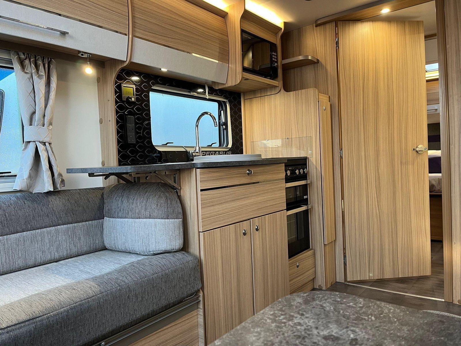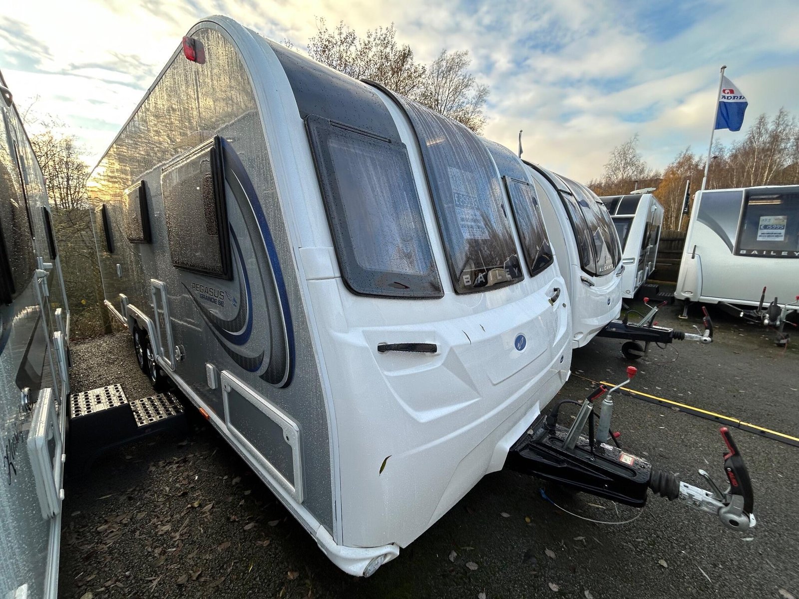 The Bailey Pegasus Grande SE Messina is a spacious, modern 8-ft-wide touring caravan designed for comfort on longer trips. Its bright front G-shaped lounge offers generous seating and dining space, with contemporary upholstery that creates a warm, relaxed atmosphere. The lounge converts into an extra sleeping area, making the caravan suitable for couples or small families.At the rear is a fixed island bed that forms a dedicated bedroom, allowing it to remain made up for convenience. A central washroom separates the living and sleeping areas and includes a separate shower, washbasin with storage and a cassette toilet, giving the layout a more private, residential feel.The well-equipped kitchen features a full-size fridge-freezer, dual-fuel hob, microwave and a stainless-steel sink with an illuminated splashback. Its practical worktop layout and storage make meal preparation easy, whether away for weekends or extended touring.Inside, the Messina uses Bailey’s light-oak cabinetry and curved overhead lockers for a clean, modern look. LED lighting, USB points and multiple mains sockets enhance day-to-day usability, while the heating and hot water system ensures comfort throughout the year. A fitted solar panel supports off-grid stays, and exterior conveniences include an awning light, external mains socket and gas BBQ point.This example benefits from a quad motor mover for effortless manoeuvring and comes with a tow cover for added protection while travelling. It has had one owner from new and includes a full service history, offering reassurance that it has been carefully maintained.Constructed with Bailey’s durable Alu-Tech bodyshell, the caravan provides excellent insulation, weather resistance and long-term durability. Towing and safety features such as the AL-KO stabilisation and trailer control systems help deliver confidence and stability on the road.Overall, this Pegasus Grande SE Messina offers a strong mix of space, comfort, style and attentive ownership, making it an appealing and well-equipped choice for anyone seeking a high-quality caravan.
