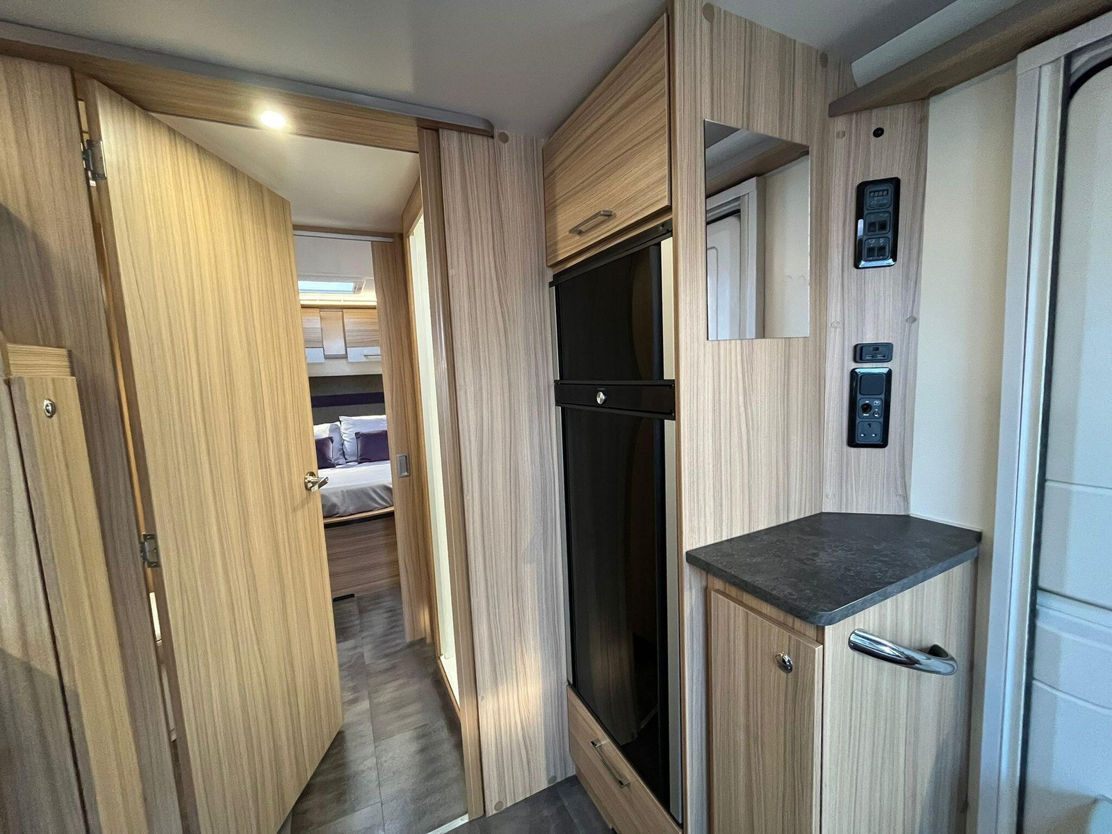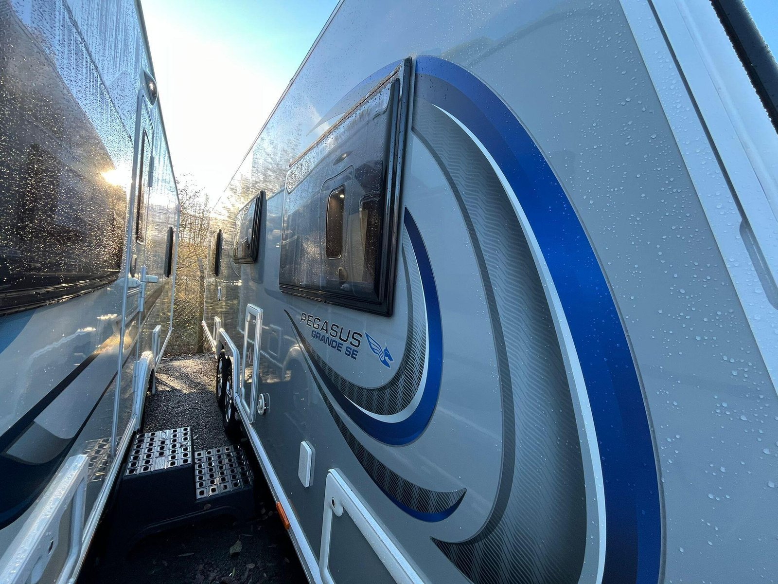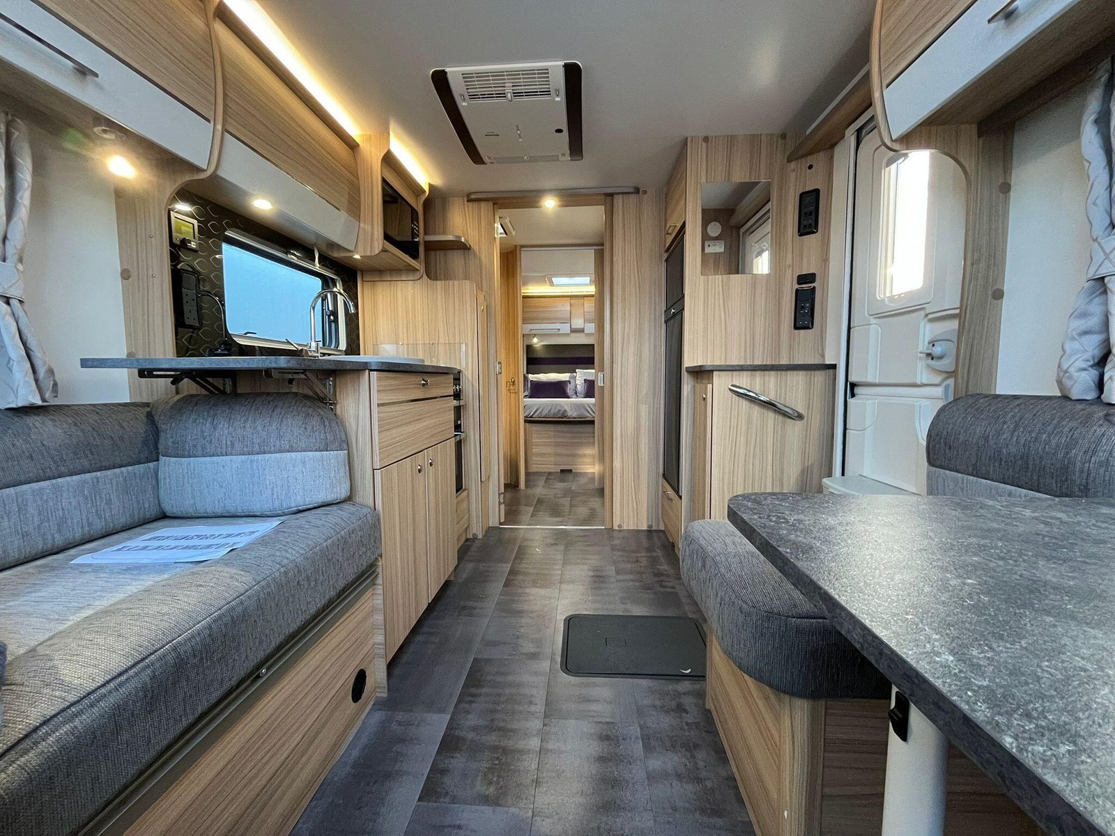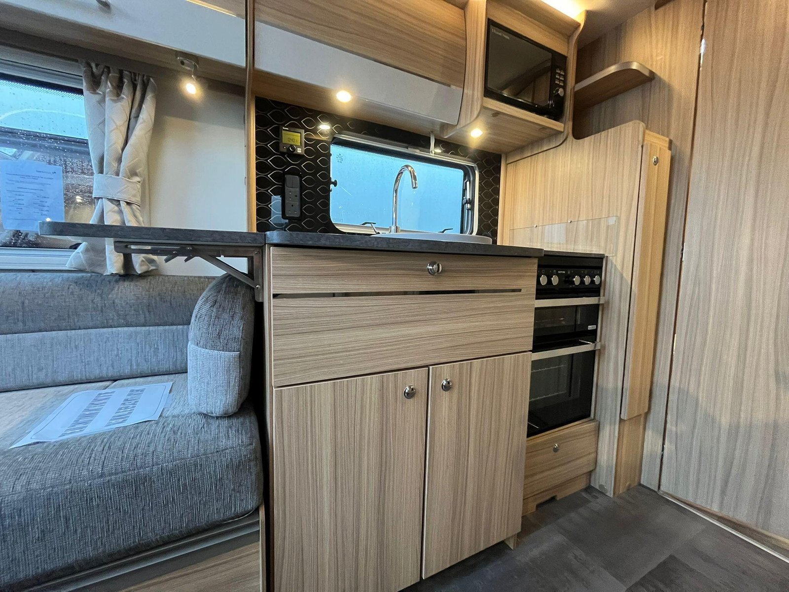 The Bailey Pegasus Grande SE Messina is a spacious, modern 8-ft-wide touring caravan designed for comfort on longer trips. Its bright front G-shaped lounge offers generous seating and dining space, with contemporary upholstery that creates a warm, relaxed atmosphere. The lounge converts into an extra sleeping area, making the caravan suitable for couples or small families.At the rear is a fixed island bed that forms a dedicated bedroom, allowing it to remain made up for convenience. A central washroom separates the living and sleeping areas and includes a separate shower, washbasin with storage and a cassette toilet, giving the layout a more private, residential feel.The well-equipped kitchen features a full-size fridge-freezer, dual-fuel hob, microwave and a stainless-steel sink with an illuminated splashback. Its practical worktop layout and storage make meal preparation easy, whether away for weekends or extended touring.Inside, the Messina uses Bailey’s light-oak cabinetry and curved overhead lockers for a clean, modern look. LED lighting, USB points and multiple mains sockets enhance day-to-day usability, while the heating and hot water system ensures comfort throughout the year. A fitted solar panel supports off-grid stays, and exterior conveniences include an awning light, external mains socket and gas BBQ point.This example benefits from a quad motor mover for effortless manoeuvring and comes with a tow cover for added protection while travelling. It has had one owner from new and includes a full service history, offering reassurance that it has been carefully maintained.Constructed with Bailey’s durable Alu-Tech bodyshell, the caravan provides excellent insulation, weather resistance and long-term durability. Towing and safety features such as the AL-KO stabilisation and trailer control systems help deliver confidence and stability on the road.Overall, this Pegasus Grande SE Messina offers a strong mix of space, comfort, style and attentive ownership, making it an appealing and well-equipped choice for anyone seeking a high-quality caravan.