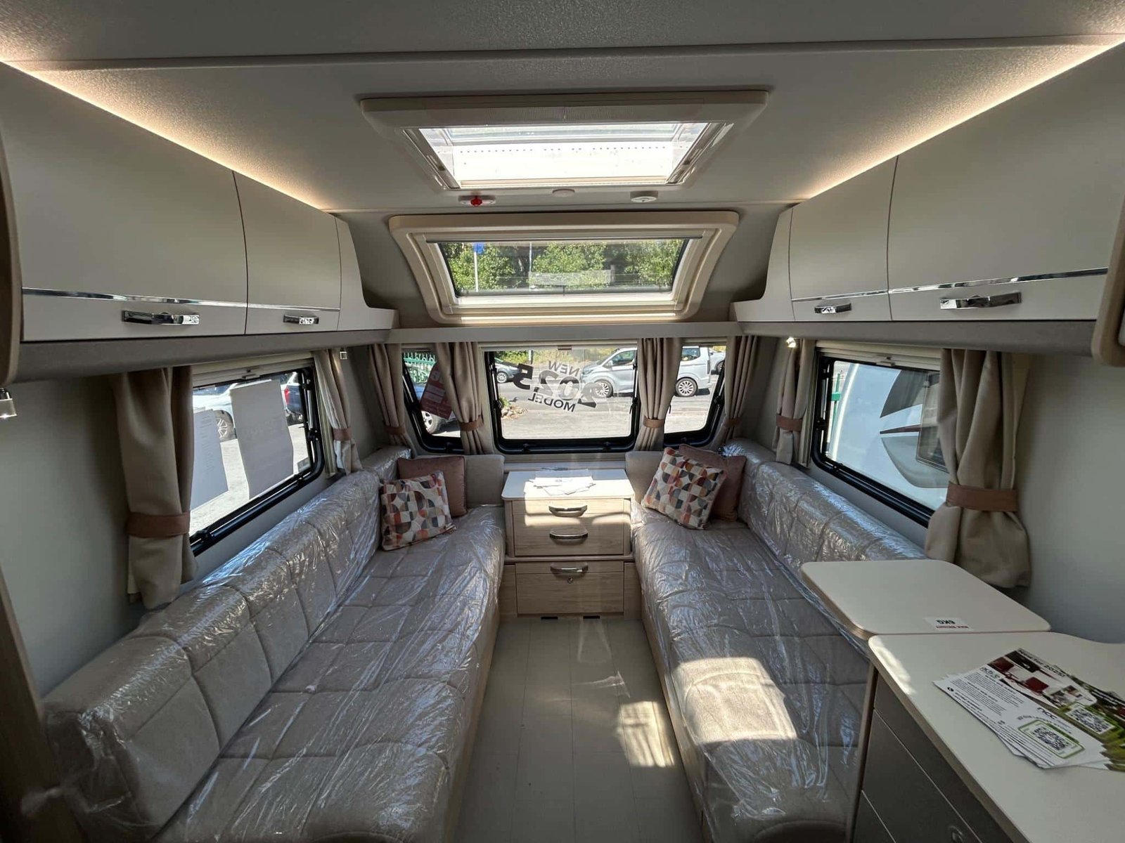 ** FREE MOTOR MOVER INCLUDED **The 2025 Elddis Avante 860 is a beautifully designed 4-berth twin-axle caravan, ideal for couples or families who want a spacious, comfortable layout with modern styling and everyday practicality.At the rear, you’ll find a private bedroom with a transverse island bed, flanked by wardrobes and overhead storage — offering a luxurious and restful sleeping space. The bedroom can be separated from the rest of the caravan with a privacy door, making it perfect for longer stays.The central washroom acts as a walk-through en-suite and includes a separate fully lined shower cubicle, cassette toilet, and stylish vanity unit — offering excellent functionality without taking up living space.At the front, the lounge features twin parallel bench seating and a large panoramic window that floods the space with natural light. It’s an inviting area for relaxing, dining, or entertaining, and converts easily into an additional double bed at night.The central kitchen is well-equipped with a three-burner gas hob, oven, grill, microwave, and a tall fridge-freezer — giving you everything you need to enjoy cooking on the go.Key Features: • Rear transverse island bed with bedside wardrobes and overhead lockers • Central washroom with separate shower and modern fittings • Bright front lounge with twin parallel seating and large windows • Fully equipped central kitchen with oven, grill, hob, and microwave • Whale underfloor heating and fast hot water system • AL-KO twin-axle chassis with ATC and AKS stabiliser for enhanced towing stability • Stylish interior with durable, easy-clean upholsteryOffering a smart layout, comfortable living space, and refined design, the 2025 Elddis Avante 860 is built for relaxed touring — wherever the road takes you.Comes with 3 year manufacture warranty and 10 year water ingress warranty.