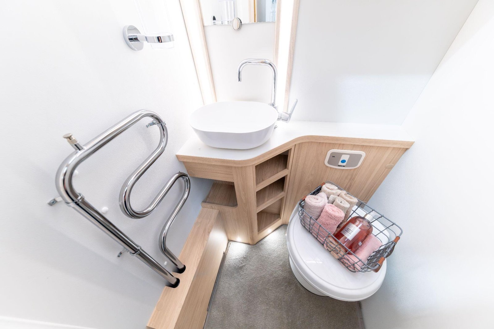 Comfort is a key focus. The Crusader range comes with the Alde 24-hour central and water heating system, which can run on gas, electricity, or both. It uses touchscreen controls and includes a night-time display setting for ease of use. With Grade III thermal insulation, these caravans are suitable for year-round touring. Large double-glazed side windows with blinds, flyscreens, and night-vent settings help regulate light and airflow, while the “Heki Lux Stargazer” rooflight, fitted with an integrated blind, flyscreen, and downlights, floods the living areas with natural light.