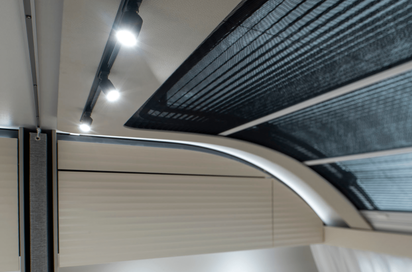 Step inside the 2026 Adora and you’re welcomed into a bright, open living space enhanced by a large panoramic front window and modern interior styling. Soft furnishings, textured finishes and ambient lighting create a calm, premium atmosphere — perfect for relaxing after a day of adventure.